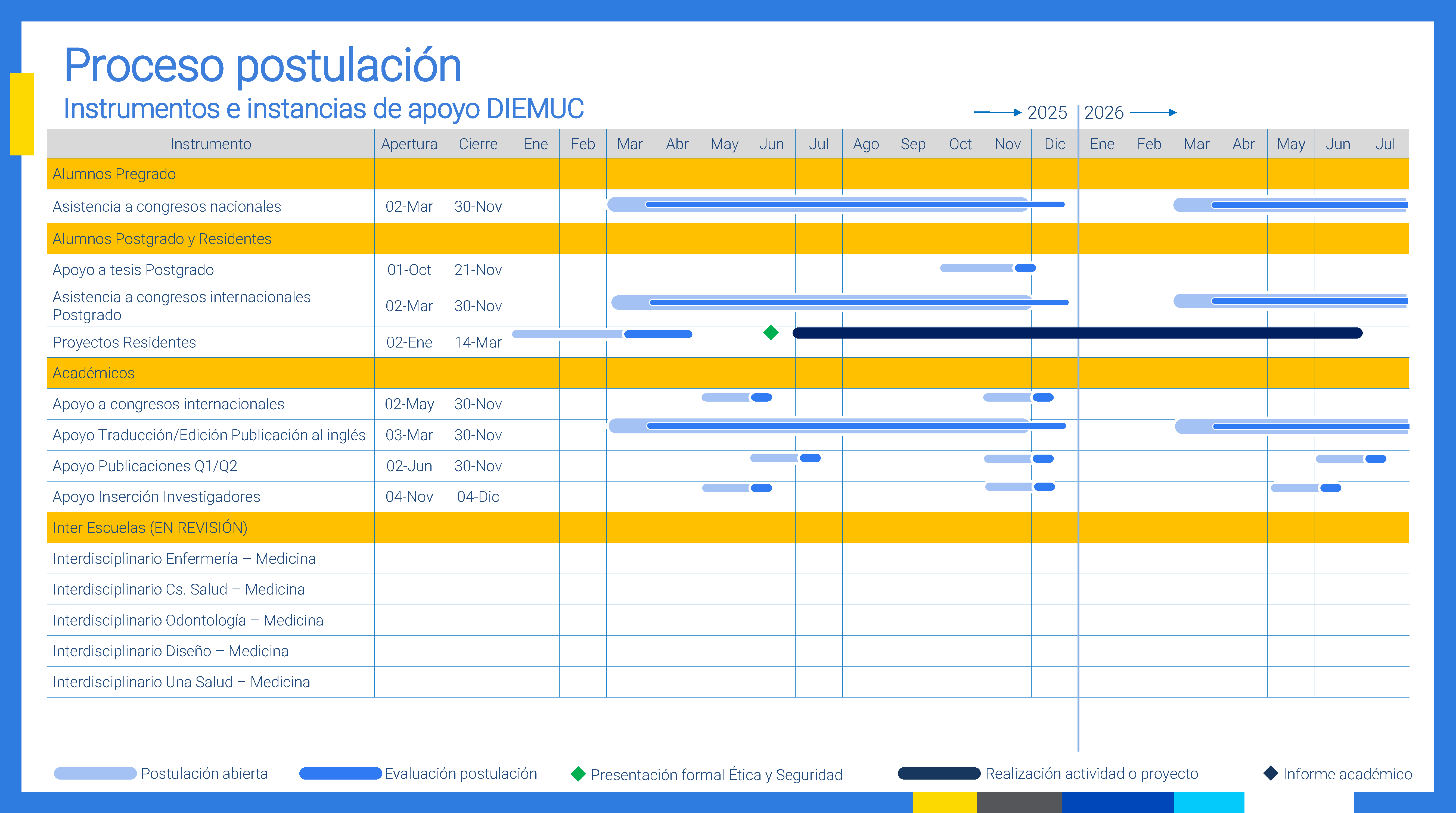 Los fondos concursables están destinados a apoyar proyectos de alumnos de pregrado, post grado, becados-residentes y académicos, fomentando la interdisciplina entre los investigadores de la Facultad de Medicina.